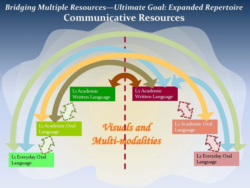 When we think about Language Acquisition, we often think of a formal schooling context that has high-stakes assessments. This is where translanguaging supporter and critic Jürgen Jaspers (2018) has commented that K-12 teaching is a job that requires teachers to skillfully balance authority and equality; imparting knowledge and valuing students’ funds of knowledge, as I explain in this post. Students must increase their proficiency, which includes monolingual performance, in national and internationally prestigious languages, and the assessments may not mirror real world tasks; in fact there may be a great deal of uncertainty as to what the real world tasks in future may be. Two principles can still be followed: build many bridges between students’ existing funds of language/knowledge and the new language/knowledge to be acquired, and do not devalue anything students possess. Such a pedagogy, from teaching academic subjects in English as an Additional Language, was developed by Angel Lin for the Hong Kong K-12 context; called “Bridging Pedagogy” or the “Rainbow Diagram,” it is an approach that is quite generalizable across geographic locations. To see how the Rainbow Diagram works in practice, you can read this post.