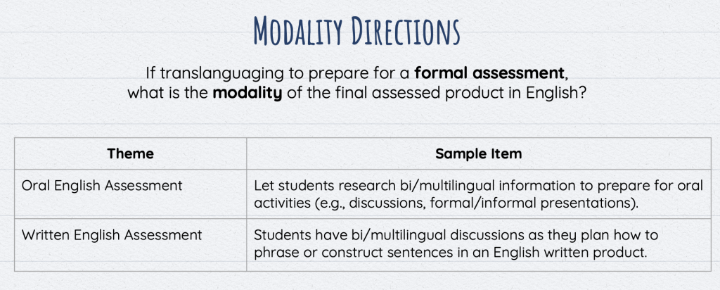 Finally, we come to the issue of what happens if there is a formal assessment in the target language only. This is where translanguaging meets task-based language teaching (Seals, Newton, Ash, & Nguyen, 2020).